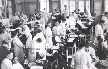 Bilder aus dem Lehrbetrieb am Dentistischen Institut Karlsruhe (Quelle: Bildarchiv Akademie Karlsruhe)