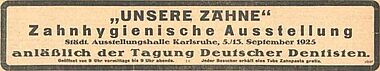 Aus der Eröffnungsrede des 1. Vorsitzenden des Reichsverbandes Deutscher Dentisten am 05. September 1925