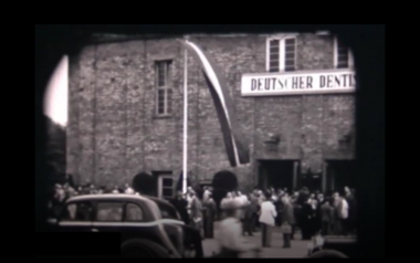 Impressionen von der Abfahrt vom Vorplatz des Hauptbahnhofs in Richtung Kongresshaus und Konferenzteilnehmer und Ehrengäste mit Walther Engel vor dem Kongress. Im zweiten Teil (ab 1:07) sieht man die Ehrung des verstorbenen ehemaligen Direktors Emil Kimmich mit seiner Büste, zwei Porträts und der Totenmaske (Quelle: Bildarchiv Akademie Karlsruhe)