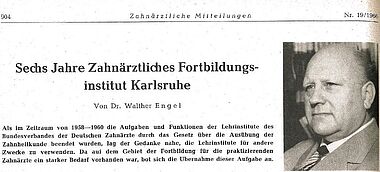 Zeitschriftenbeitrag „Sechs Jahre Zahnärztliches Fortbildungsinstitut Karlsruhe“ von Dr. Walther Engel in den Zahnärztlichen Mitteilungen S. 904-906 vom 01. Oktober 1966
