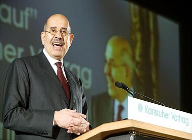 „Der Karlsruher Vortrag ist nämlich sehr vieles. Er ist die Begegnung mit einem Menschen, der Verantwortung trägt und in öffentlicher Rede dazu Stellung nimmt, wie er eben diese Verantwortung ausfüllt. Er bedeutet Gemeinschaft. Die Gemeinschaft derer, die zuhören und sich anschließend darüber austauschen. Er bedeutet Teilhabe am Diskurs über die Gestaltung unserer Welt und damit auch den Gewinn von neuen Perspektiven und Einsichten.“