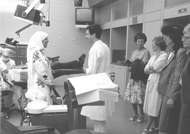 Zur BildergalerieAus den 80ger Jahren, als die zahnärztliche Behandlung der Berichterstatterin begann, gibt es nur wenige Bilder aus der Poliklinik. Sie wurden zumeist anlässlich des Besuchs von ausländischen Delegationen gemacht. Hier sind Bilddokumente zu sehen, die Besucher aus Japan, Kuwait, Ägypten und China zeigen. Der Direktor und der OA der Poliklinik hatten dann die Aufgabe, den Besuchern das Haus zu zeigen.